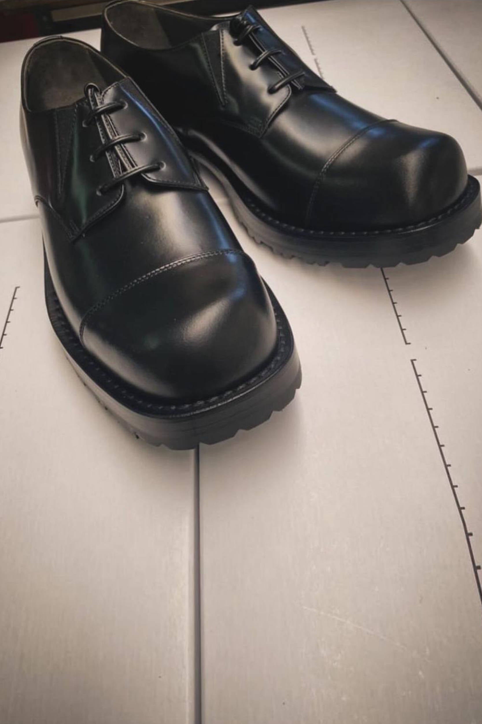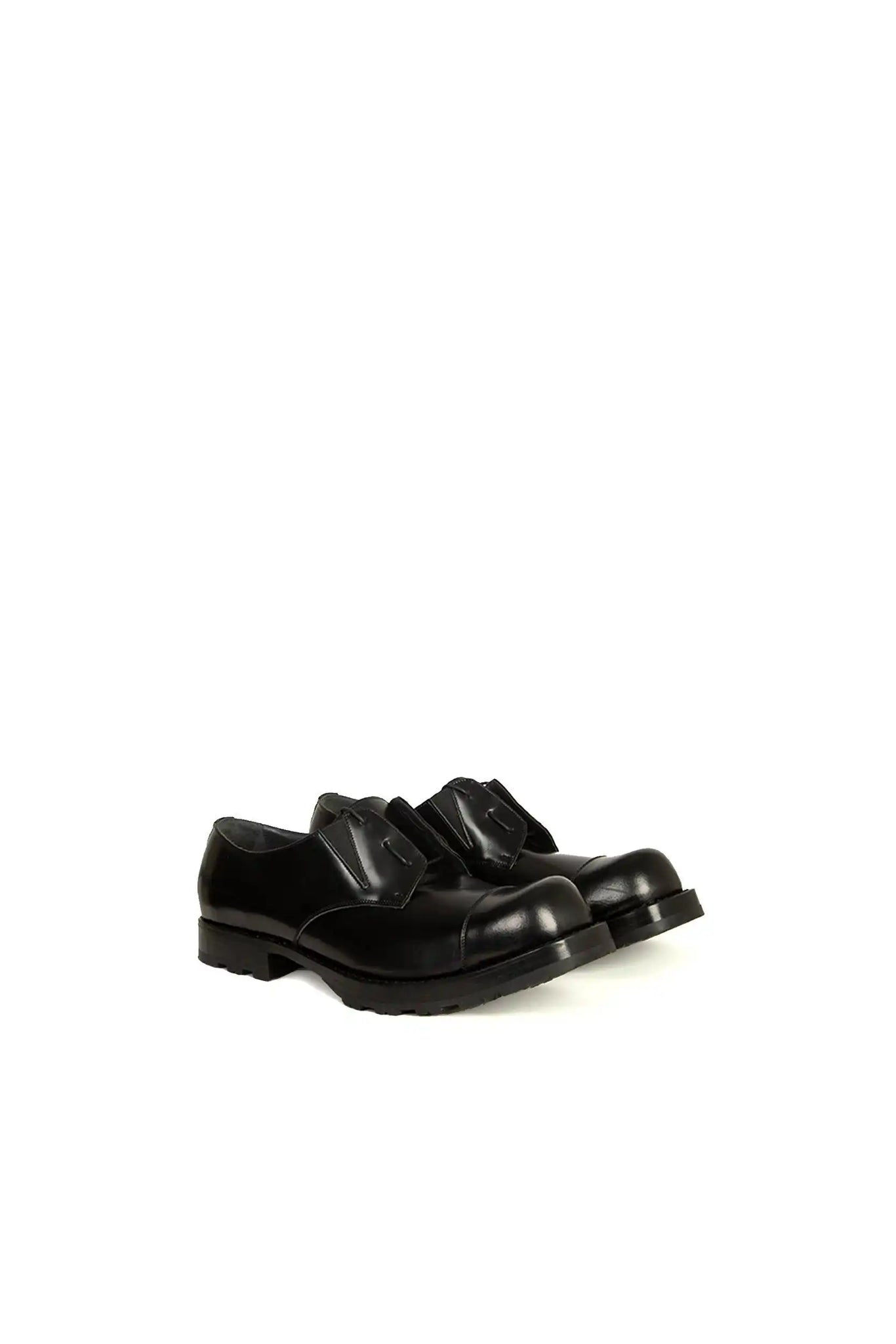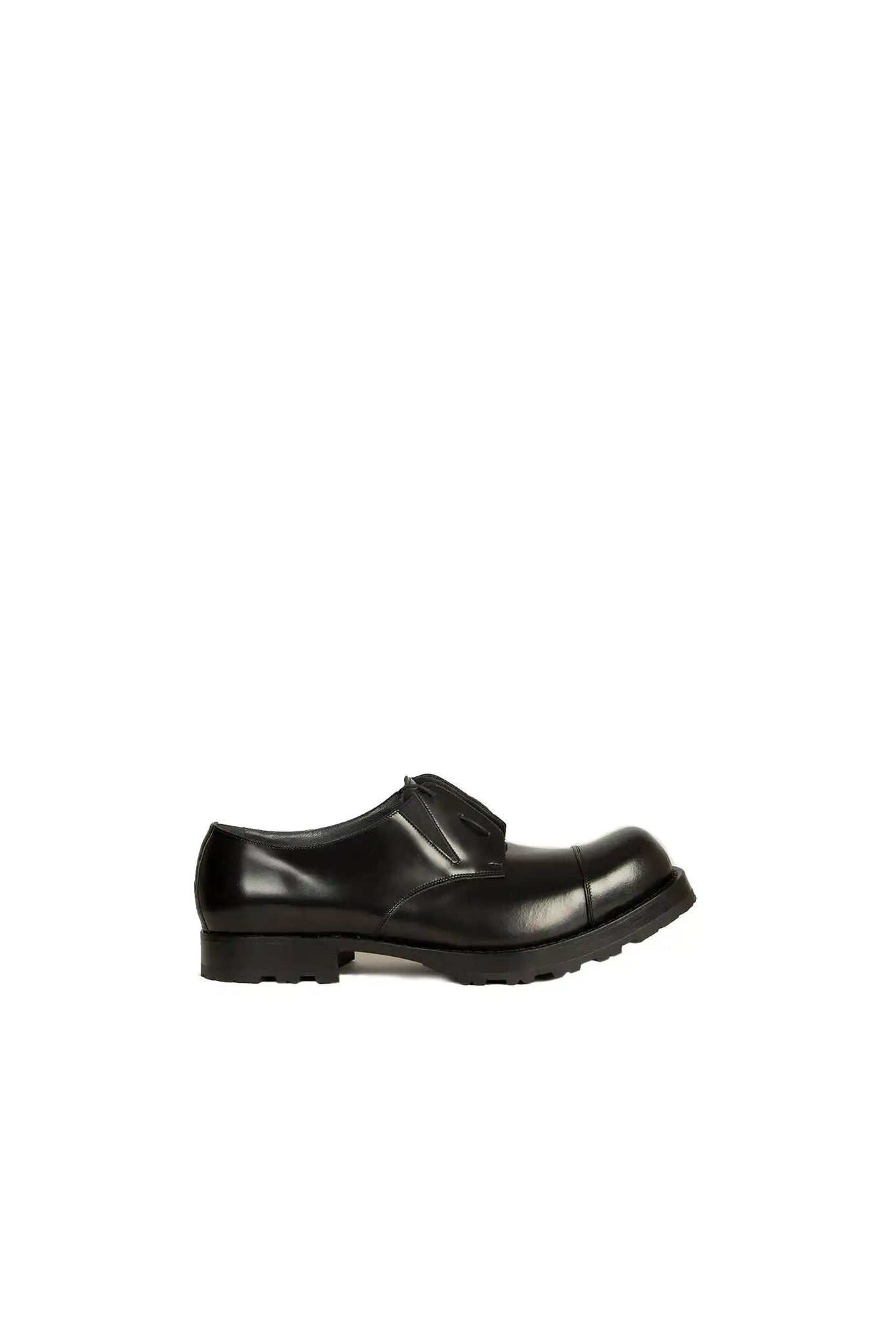 Derby aus schwarzem Leder mit Schnürverschluss vorne. Hergestellt in Italien.