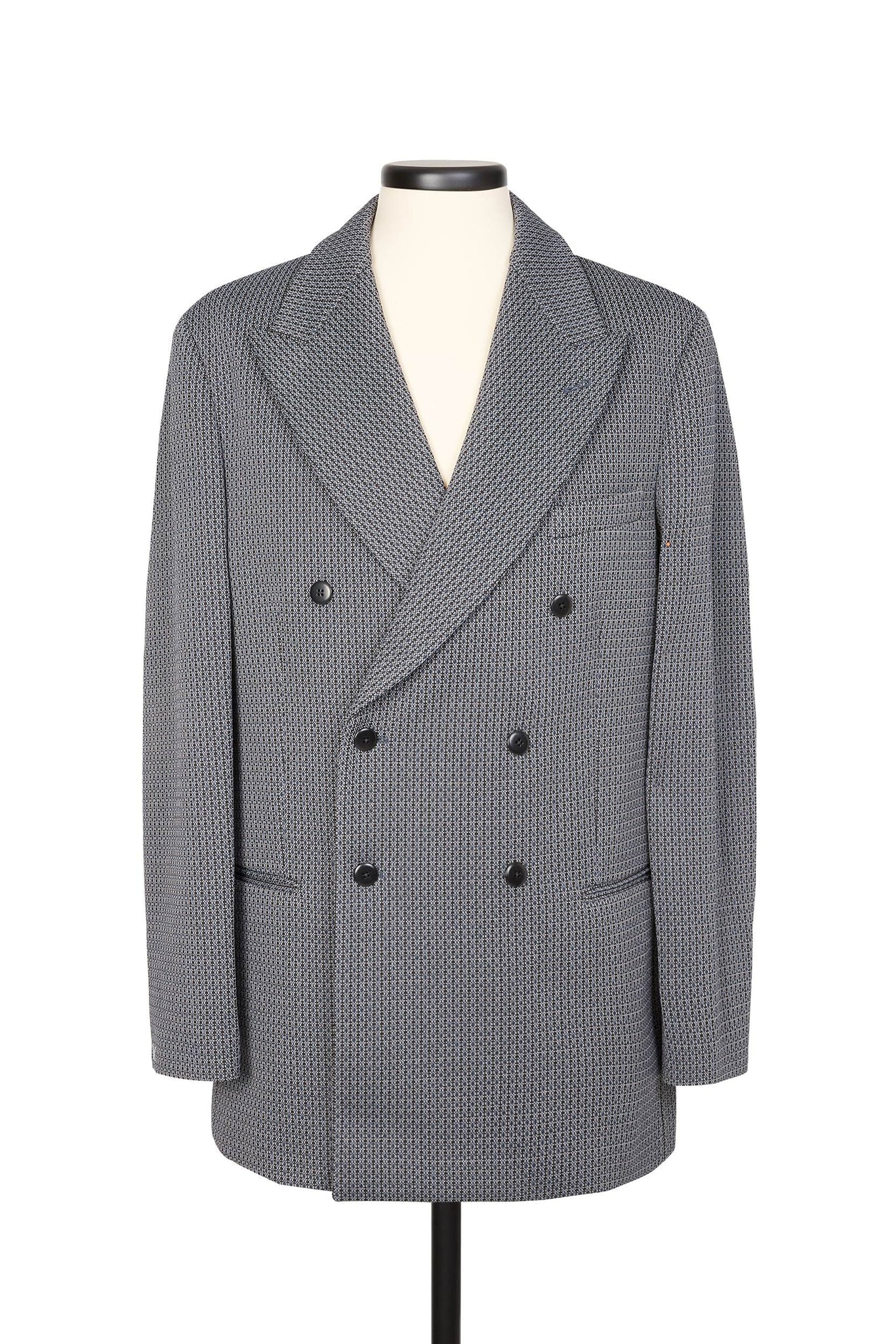 Zweireihiger Blazer mit normaler Passform aus Punto Milano-Jersey, präsentiert in Grau.