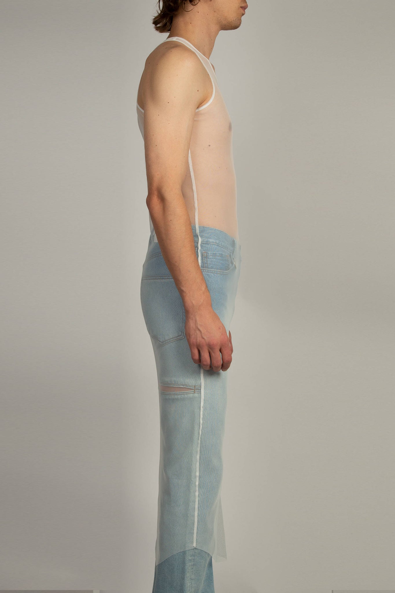 Canotta lunga in rete con retro stile racer per un profilo atletico e allungato. L'orlo è rifinito con un bordo a taglio vivo che aggiunge un dettaglio discreto e destrutturato. Disponibile in bianco e realizzato in 100% poliestere.
