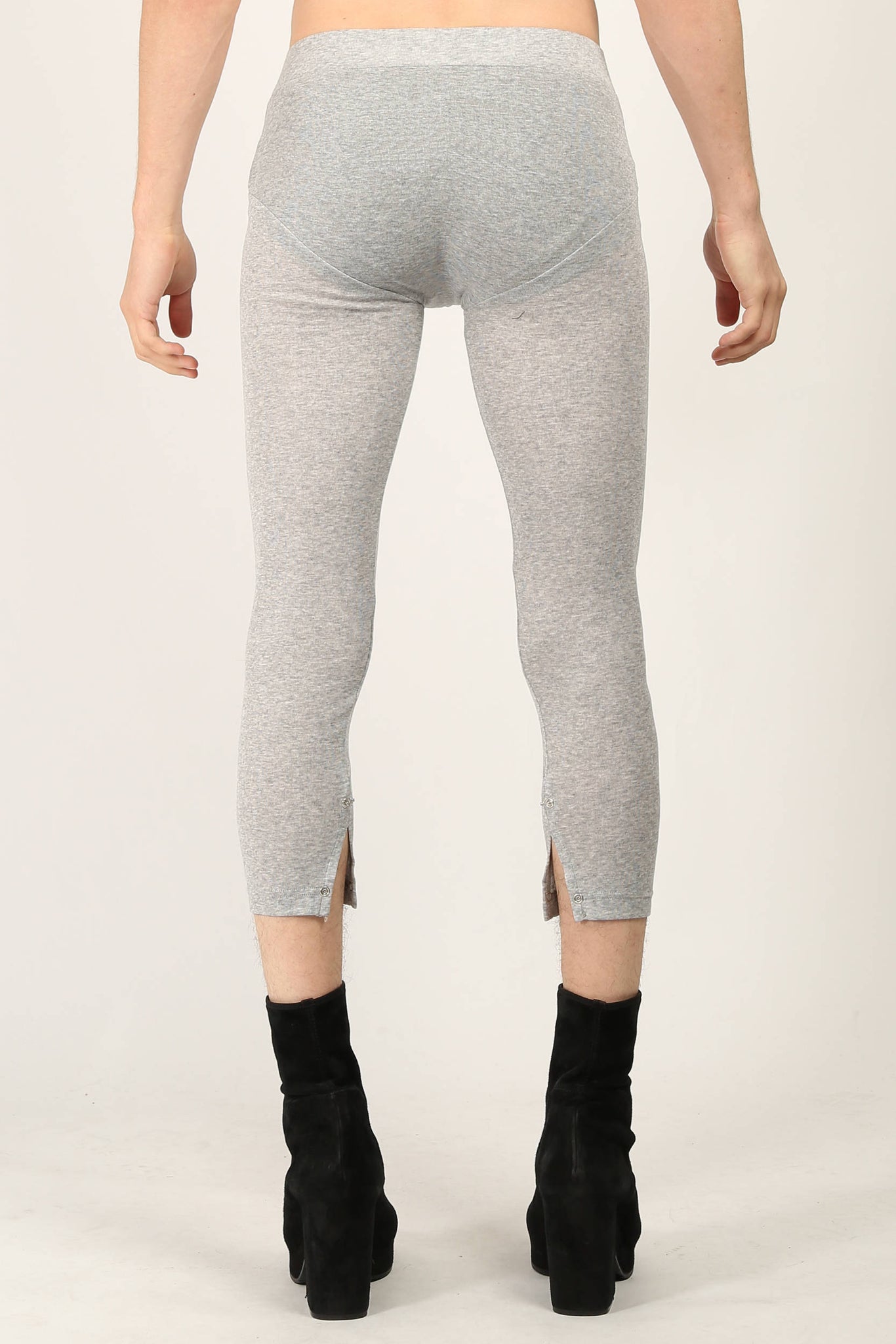 Leggings super morbidi in jersey a costine fini con spacchi al fondo e chiusura con bottoni a pressione.
