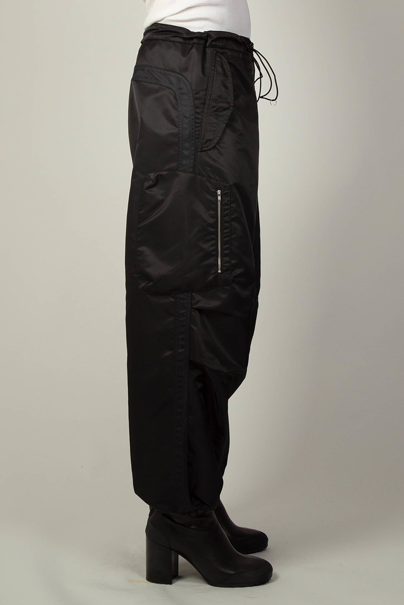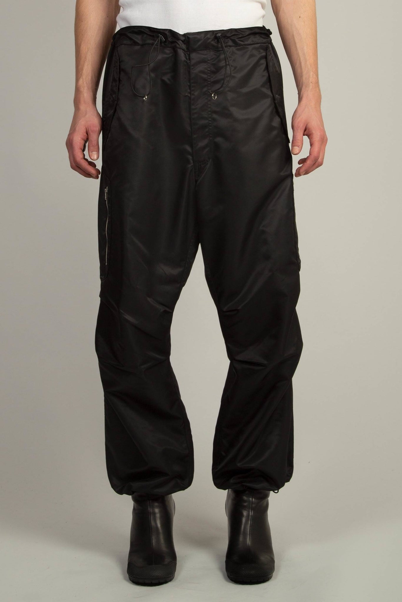Signature relaxed fit nylon pant with coulisse at hem and waist, officer stripe detail, zip patch pocket and centre back zip in Black.