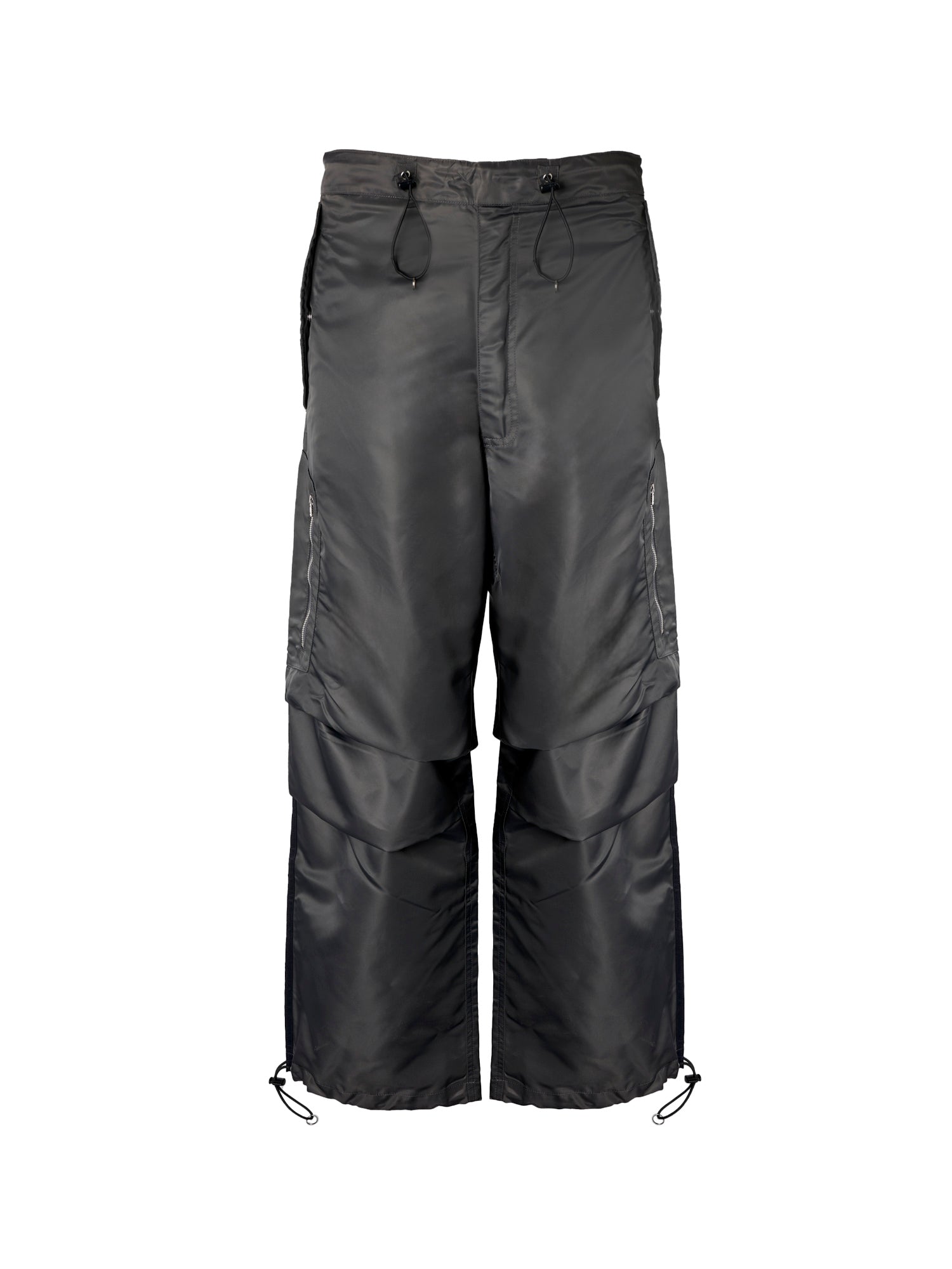 Signature relaxed fit nylon pant with drawcord at hem and waist, officer stripe detail, zip patch pocket and center back zip in Grey.