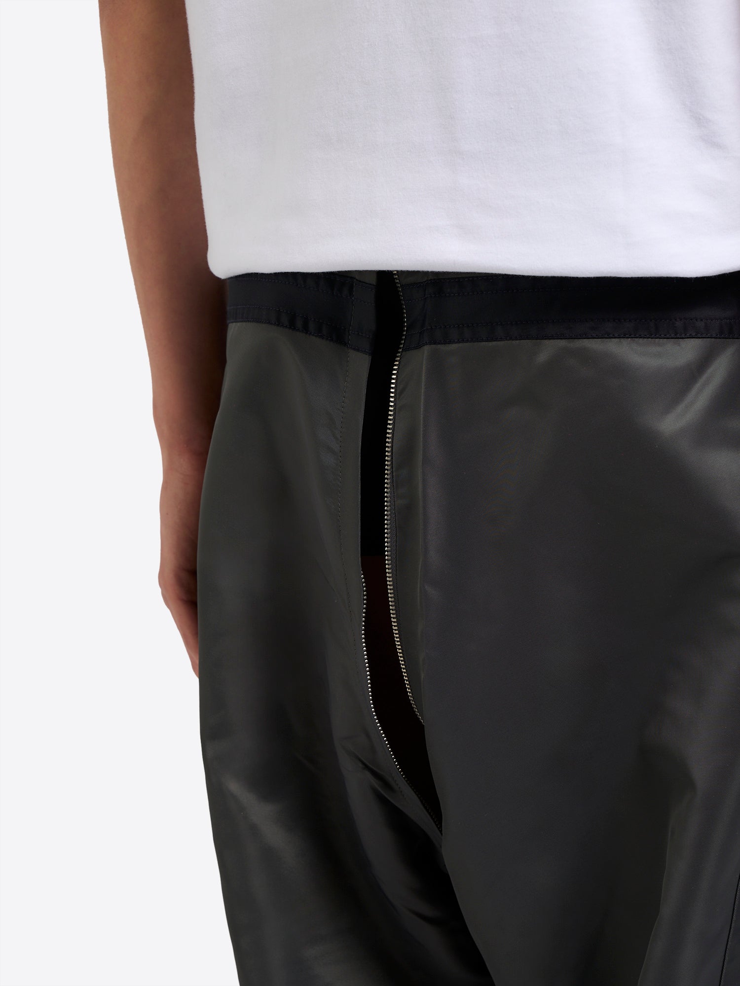 Signature Berlin Baggies presented as a relaxed fit nylon pant. Designed with drawcord at the hem and waist for adjustable shape. Features include officer stripe detail, a zip patch pocket and a zip at the center back for freestyling. Displayed color: Grey. Fabrication: 100% Nylon.