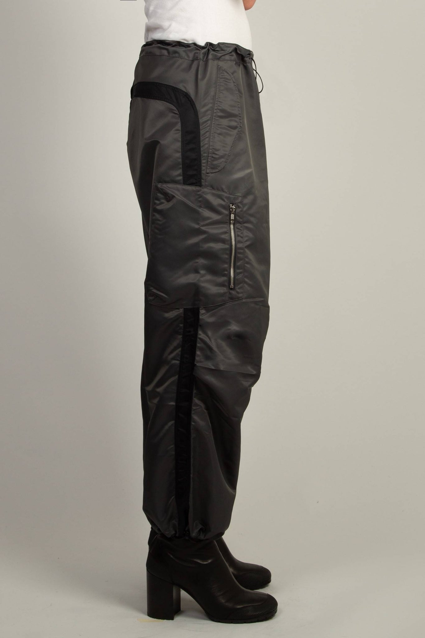 Signature relaxed fit nylon pant with drawcord at hem and waist, officer stripe detail, zip patch pocket and center back zip in Grey.
