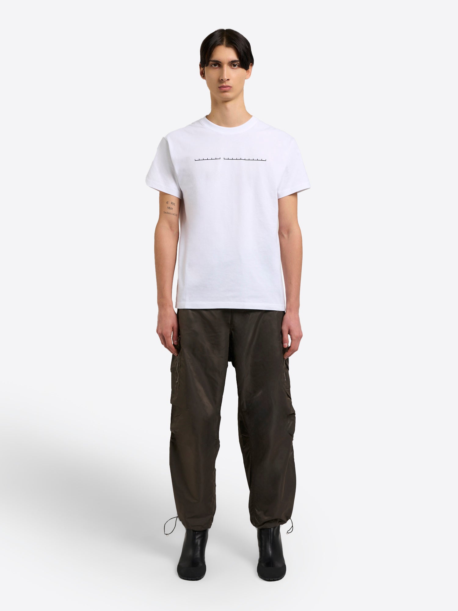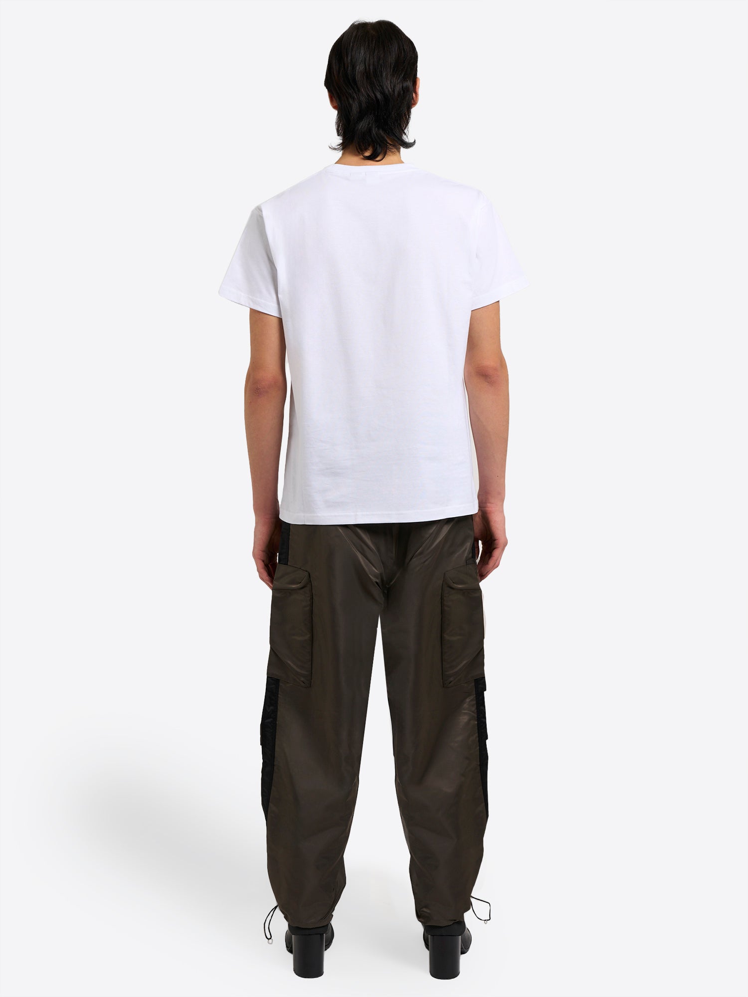 The Berlin Baggies return in a crisp nylon with a roomy, relaxed profile and adjustable drawcords at the waist and hems to fine tune the taper. A sharp officer stripe runs down the leg, while a zip patch pocket and a functional center back zip introduce utility notes. Presented in bronze for a versatile neutral that pairs across the wardrobe.