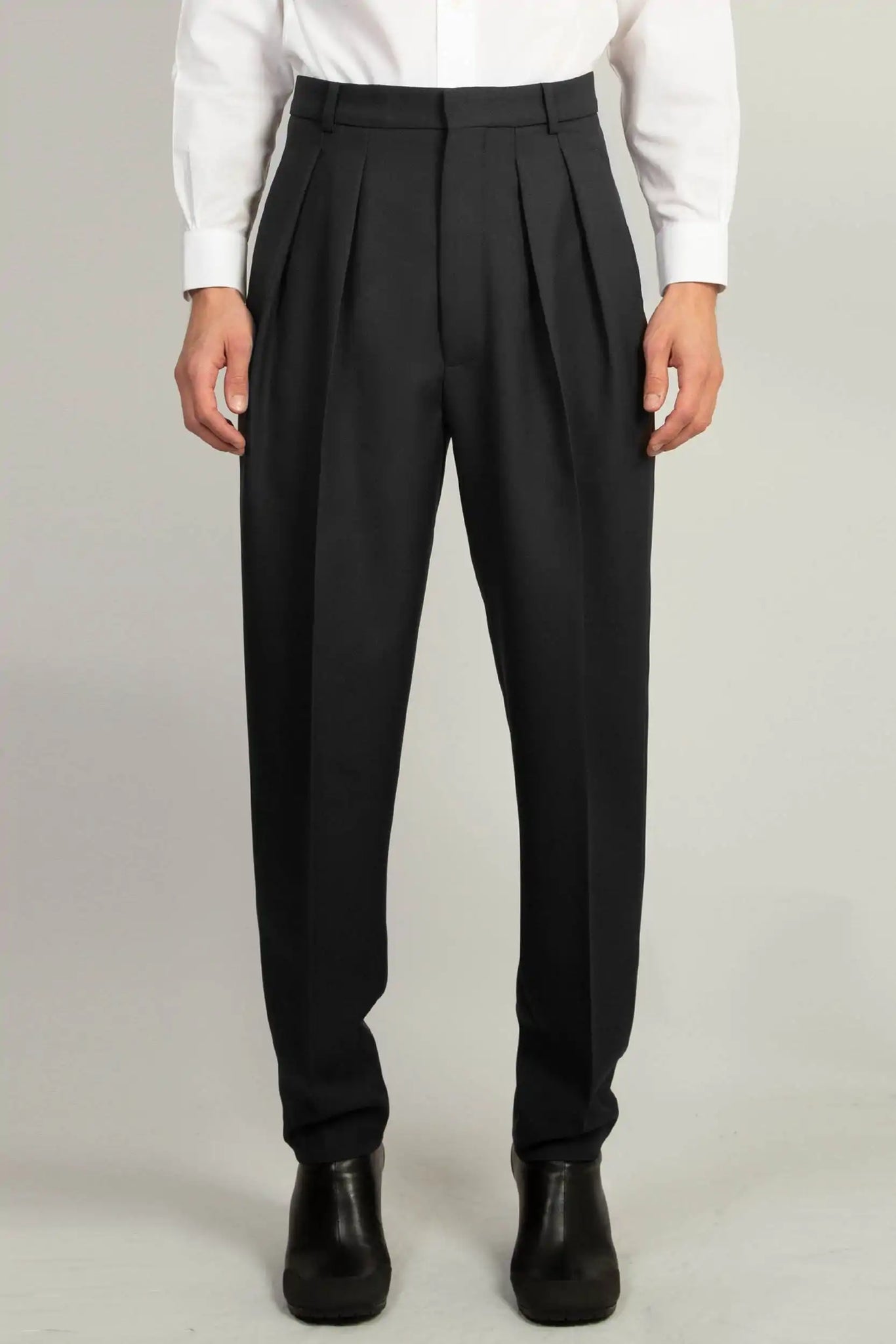 Gaberdine high waist two-pleat tapered trouser in Black designed as a sharp, minimal tailored essential.