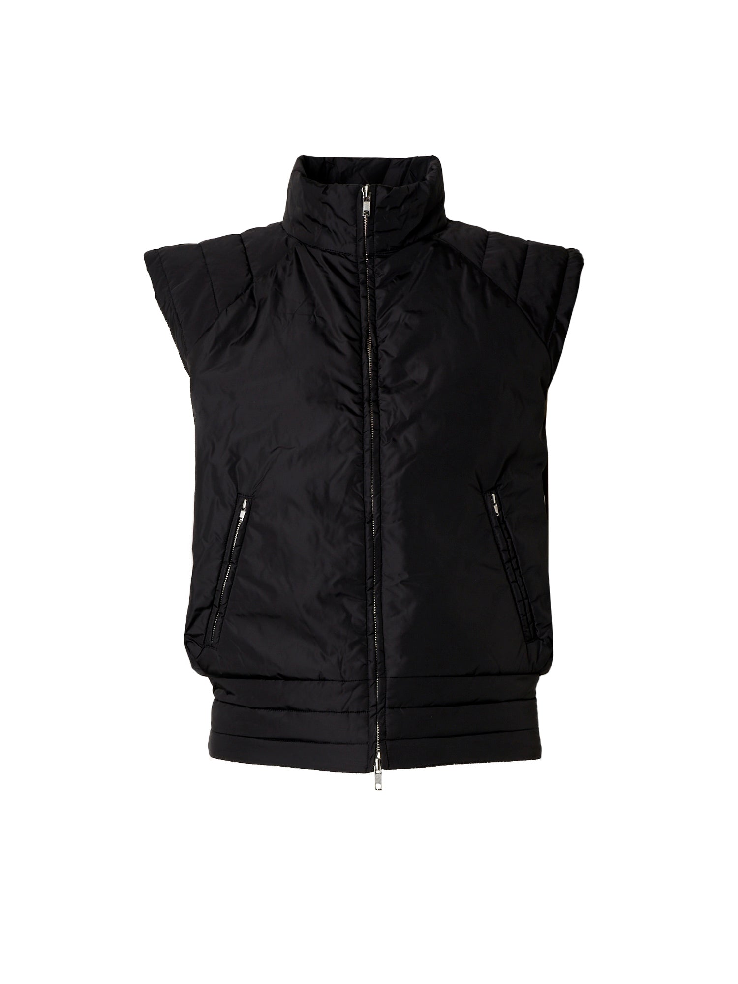 这款短袖背心采用高领设计,配有松紧腰带和拉链口袋。非常适合作为内搭,能够凸显肩部线条。