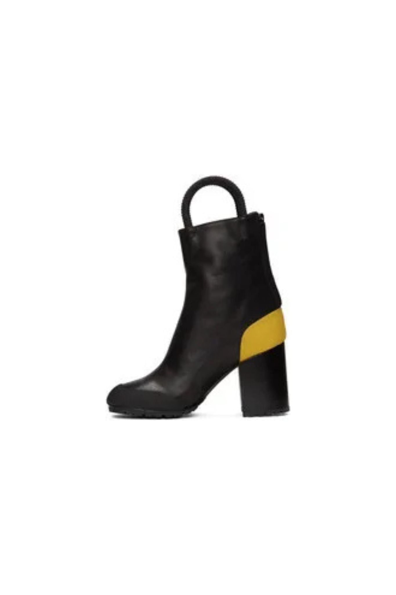Random Identities出品的真皮踝靴,配有橡胶鞋头和9厘米鞋跟;意大利制造。黄色款。